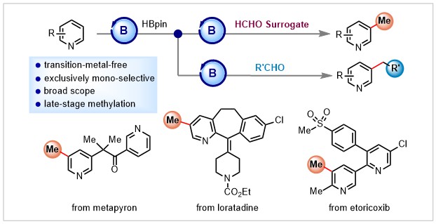 Methylation and Alkylation of Pyridines at the meta Position Using Aldehydes or Aldehyde Surrogates
