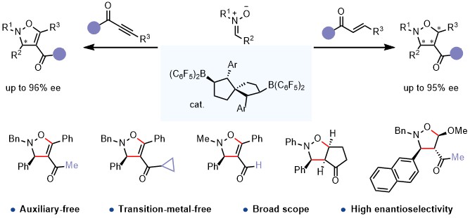 Asymmetric [3+2] Dipolar Cycloaddition of Nitrones with Alkynones or Enones Catalyzed by Spiro-Bicyclic Bisborane Catalysts